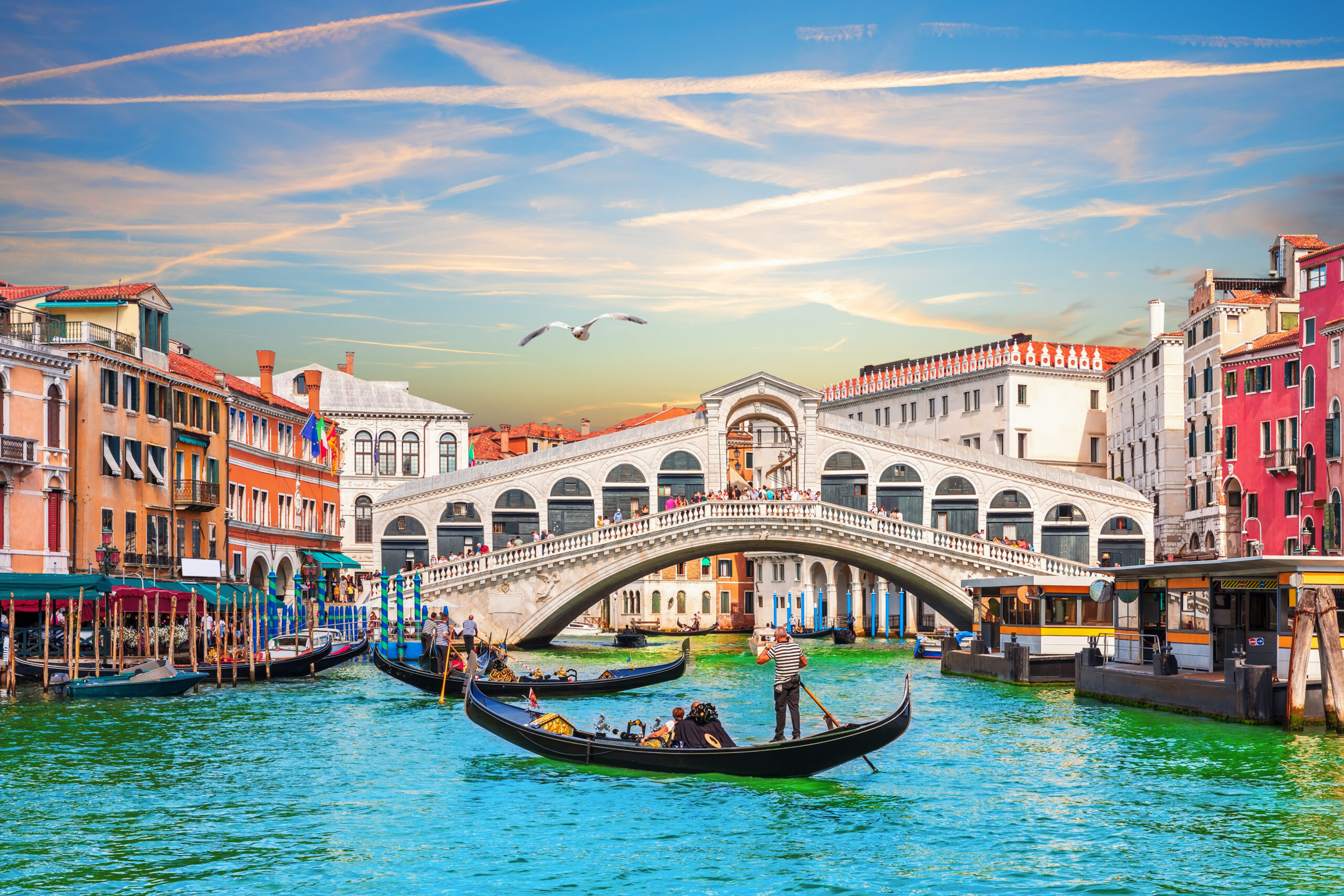 Sunset in the Grand Canal near the Rialto bridge, Venice, Italy