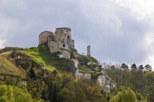 Chateau Gaillard castle ruins on a hill with a cloudy sky