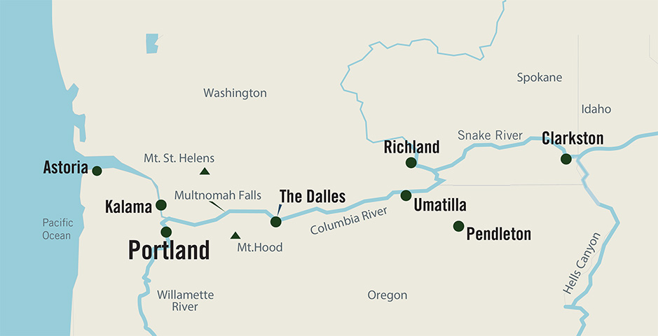Beginning in Portland, traverse the wildflower-lined Columbia River, then visit Astoria and discover a city full of rich historical significance, captivating architecture, and stunning scenery. Enjoy a peaceful nature walk along the river in Kalama or explore the local boutiques and antique stores. Spend time in The Dalles and learn about the days of gold miners and gunslingers. Cruise the Columbia River Gorge to Richland and learn a little bit about everything from World War II to geology to the city’s agricultural roots. Before your journey comes to an end, spend a day in Clarkston and trace the path of Lewis and Clark.