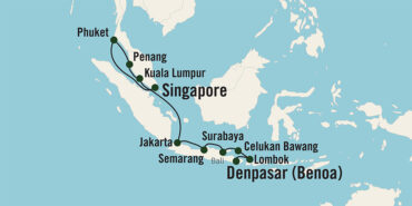 Beginning in dynamic Singapore, set sail for the sun-kissed shores of Phuket, where turquoise waters and golden sands bring you paradise. Then, let the aromatic flavors of Malaysian food tantalize your taste buds in Penang. In Kuala Lumpur, explore everything from the soaring Petronas Towers and the royal palace to majestic Gothic churches. Discover the rich history of Jakarta, where remnants of Dutch influence still linger. Visit Sam Poo Wong, the oldest Chinese temple in Semarang. Experience the bustling energy of Surabaya, the second-largest city in Indonesia. Then, lose yourself in the cultural tapestry on Bali’s northeast shore at the village of Celukan Bawang, where ancient temples and vibrant markets await your discovery. Make your way to the rugged landscapes of Lombok and unwind on a pristine beach where turquoise waters surround you before you end in Bali.