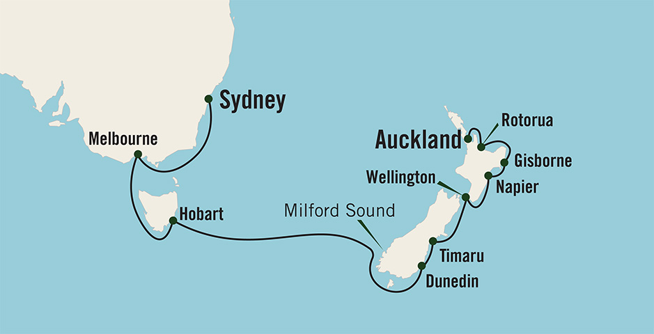 As you make your way to New Zealand, take in the sensational sights and sounds along the Fjords of Milford Sound. In Dunedin, lose yourself in fascinating Scottish traditions, and in Timaru, uncover the region’s ancient spirit through intricate Maori rock art etched into the city’s landscape. See movie-making history in Wellington, where The Lord of the Rings was filmed. Bask in the sun on a beach in Napier. Finally, before arriving in Auckland, stop in Rotorua and explore Hell’s Gate Geothermal Park, where you will get a hands-on intro to the ancient healing power of geothermal mud, cherished by the Maori people.