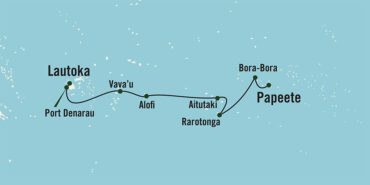 Your journey begins in Papeete, a hub of vibrant Polynesian culture. Embark Oceania Cruises’ Vista and sail to Bora Bora, where the lagoon shimmers beneath the sun and bungalows dot the horizon. As you make your way across the open ocean, Rarotonga and Aitutaki offer pristine beaches and crystal-clear lagoons, perfect for immersive cultural experiences. Discover Alofi’s hidden coves, the tropical beauty of Vava’u’s archipelago, and the welcoming villages of Port Denarau, before ending your journey in Lautoka.