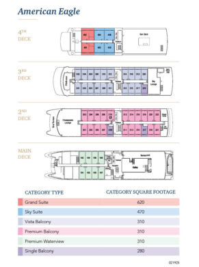 At a capacity of just 100 guests, American Eagle offers the best qualities of expedition adventure cruising with the refinement, luxury, stability, and land proximity of river cruising. The design of the ship allows rare access into small ports and ability to travel on almost any river or waterway in the U.S. With land never out of sight, American Eagle is a practical alternative to ocean expeditions, allowing for more time to explore each port in depth.
